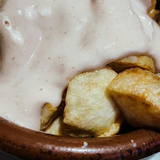 Abbiamo preso le patatas bravas (giusto per assaggiare tutte le versioni possibili), una tagliata con rucola e pomodorini e il tipico pollo all'ajillo che è PAZZESCO!